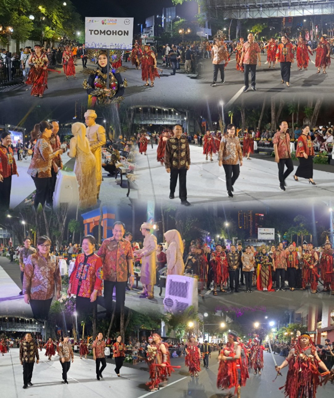 Kontingen Pemerintah Kota Tomohon yang dipimpin langsung oleh Walikota Caroll Senduk bersama Ketua TP PKK Kota Tomohon drg. Jeand’arc Senduk-Karundeng dan Wakil Walikota Tomohon Sendy Rumajar ikut parade Budaya Nusantara Apeksi 2025, dimana pemkot Tomohon sendiri tampil unik dengan tarian kabasaran suku Minahasa.