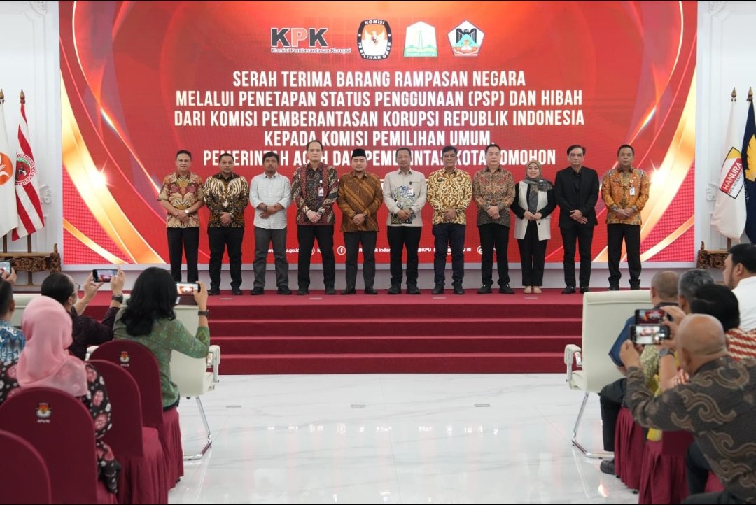 Pada kesempatan yang sama, KPK RI juga menyerahkan hibah BMN kepada KPU RI dan Pemerintah Provinsi Aceh. Hibah tersebut diterima langsung oleh Ketua KPU RI, Mochammad Afifuddin, dan Plt. Sekda Aceh, Drs. Muhammad Diwarsyah, M.Si.
